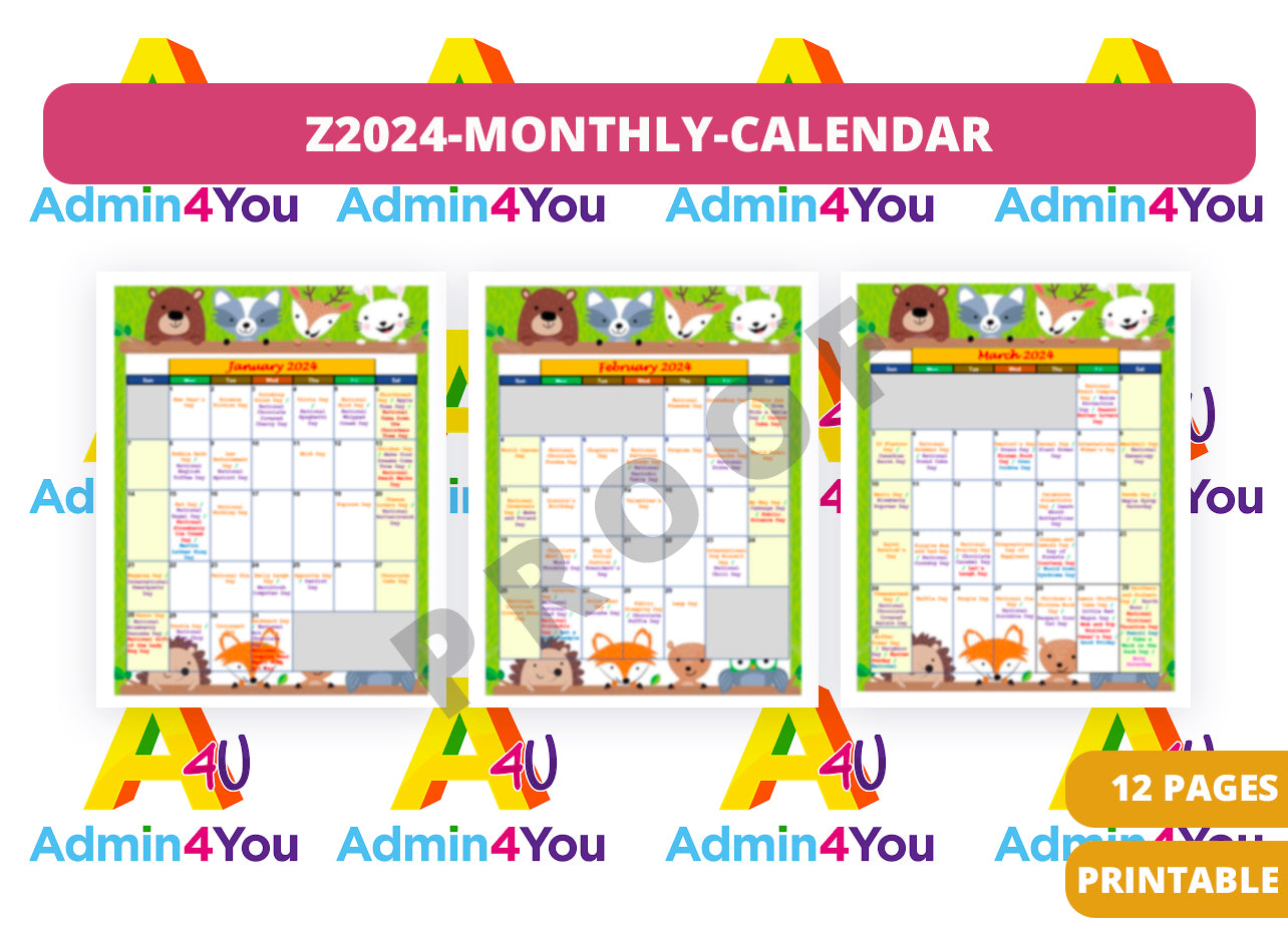 2024 National and FUN Holiday 12 Month Calendar โ Admin For You