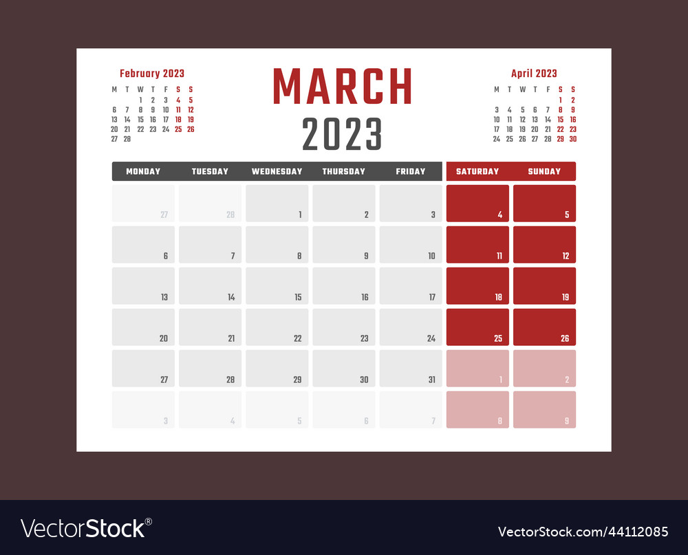 March 2023 Calendar Leaf Week Starts On Sunday Business Vector